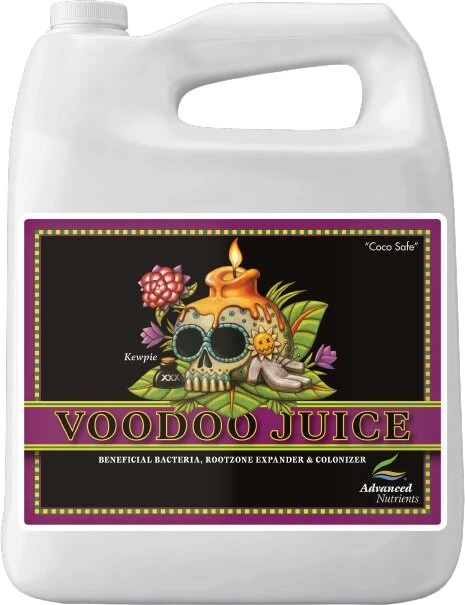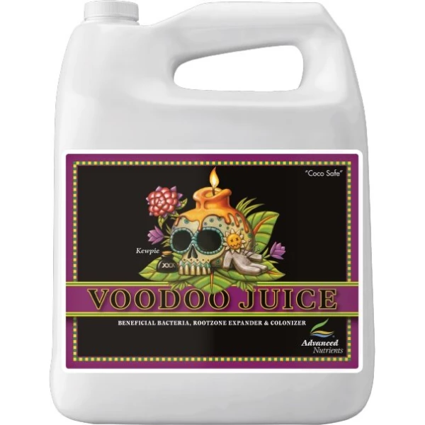 Advanced Nutrients Voodoo Juice is een sterk geconcentreerde wortelstimulator gemaakt van krachtige en heilzame bacterieculturen voor gebruik in de eerste weken van zowel de groei- als bloeifase. De natuurlijke samenwerking van bacteriën en het wortelnetwerk van je planten is een essentieël onderdeel van opname en verwerking van voeding, deze symbiose bevordert ook de weerstand van je gewassen en helpt veel voorkomende wortelziektes zoals Fusarium en Cercosporosis te voorkomen. Advanced Nutrients heeft voor zijn Voodoo Juice vijf superstammen van nuttige bacteriën geïsoleerd en opgekweekt voor het beste resultaat.