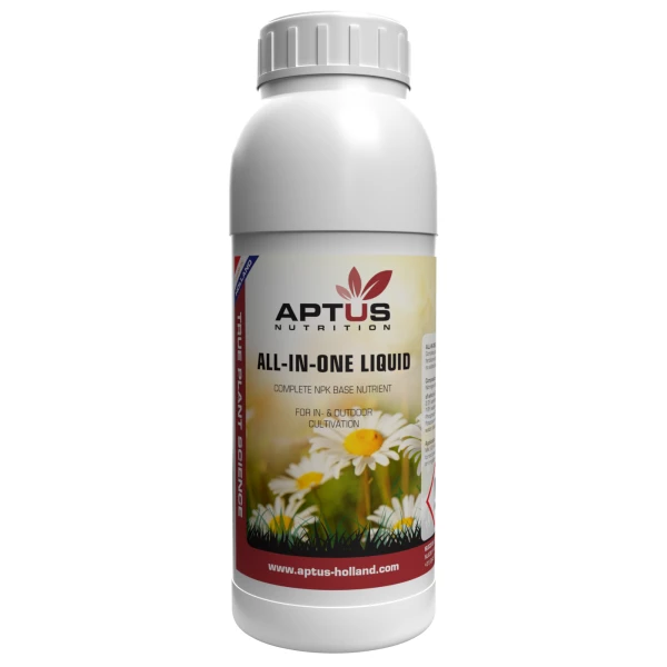 Een volledig minerale meststof geschikt voor alle mediums en systemen. All-in-One Liquid is te gebruiken vanaf de vegetatieve fase tot de bloei-/afrijpingsfase.