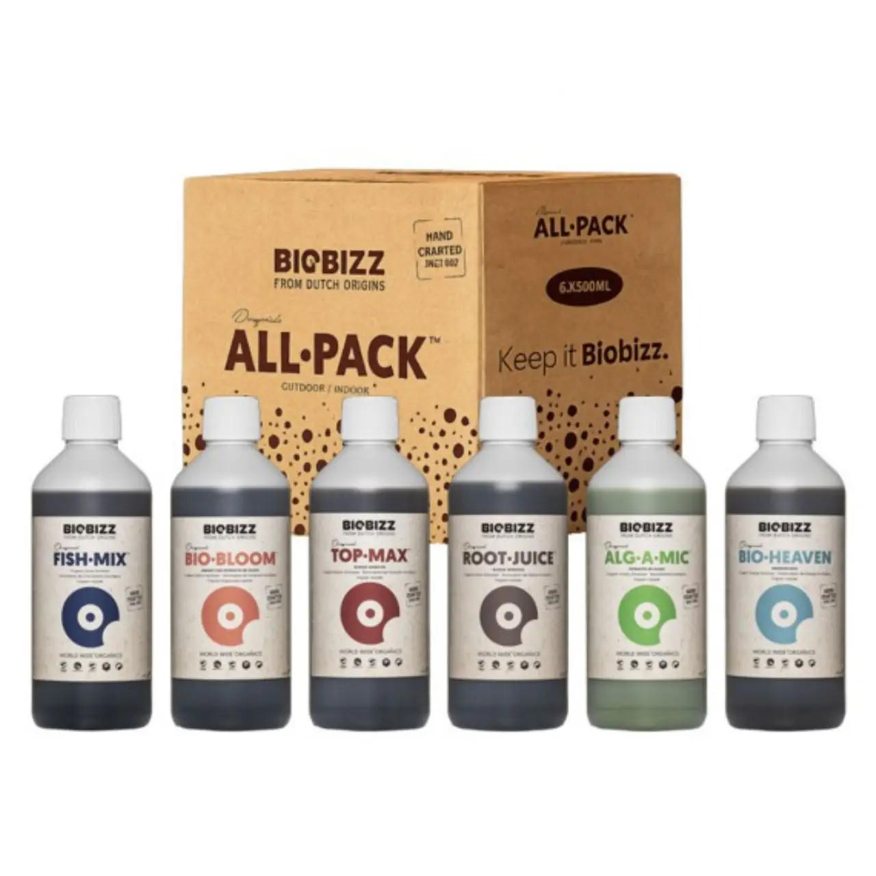 De Biobizz All-Pack Outdoor 250 ml biedt de ideale introductie tot 100% biologisch buitenkweken. Dit compacte pakket bevat zes essentiële boosters en meststoffen voor een gezonde groei in de volle grond of op het balkon. Bescherm jouw planten tegen weersinvloeden en maximaliseer de natuurlijke smaak met dit professionele systeem. Bestel direct online of bezoek onze shop aan de Faradaystraat 13K.