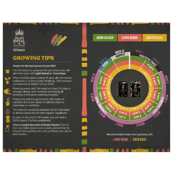 Samen met de macronutriënten van Grow·Soldier en Flowa·Bloom creëert Green·Mystic een ideale omgeving waarin de planten van uitstekende vitaliteit genieten en op hun maximale potentieel produceren.