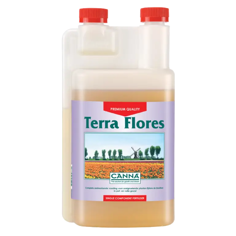 CANNA Terra Flores 1 liter van CANNA is een hoogwaardige bloeivoeding die specifiek is afgestemd op planten die worden gekweekt in pot- en volle grond. Tijdens de bloeifase verandert de voedingsbehoefte van de plant aanzienlijk. Terra Flores is ontwikkeld om hier optimaal op in te spelen.