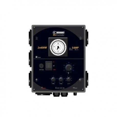 VOI-BOX & KLIMAATREGELAAR in 1 De CLI-MATE Mini-Controller is een complete regelaar voor het aansturen van verlichting en klimaatbeheersing! 2 x max. 600W + 3 AMP Klimaatregelaar