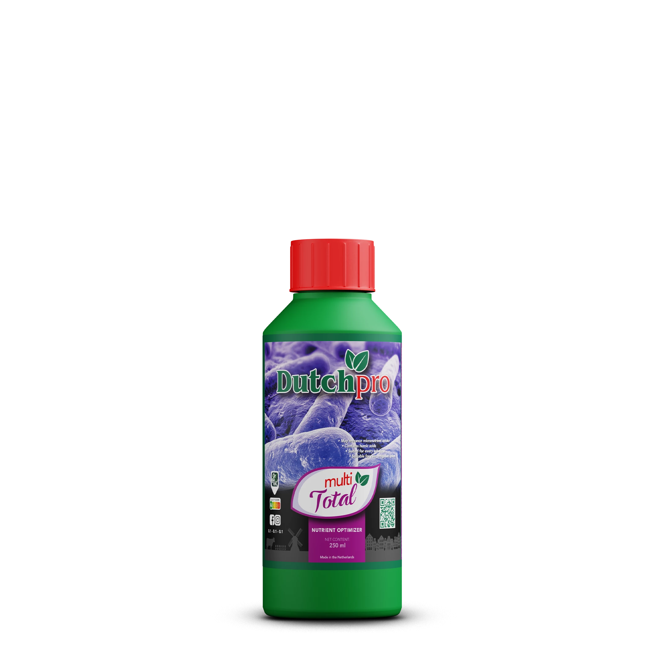 Deze door Dutchpro ontwikkelde bodemverbeteraar zorgt dat organisch materiaal afkomstig uit dood plantmateriaal omgezet wordt in bruikbare plantstoffen Tevens stimuleert DutchPro Multi Total de ontwikkeling van de wortelen door zijn effect op de bodemstructuur Bevordert het bacteri le leven van het substraat dat de voedzame elementen ontwikkelt