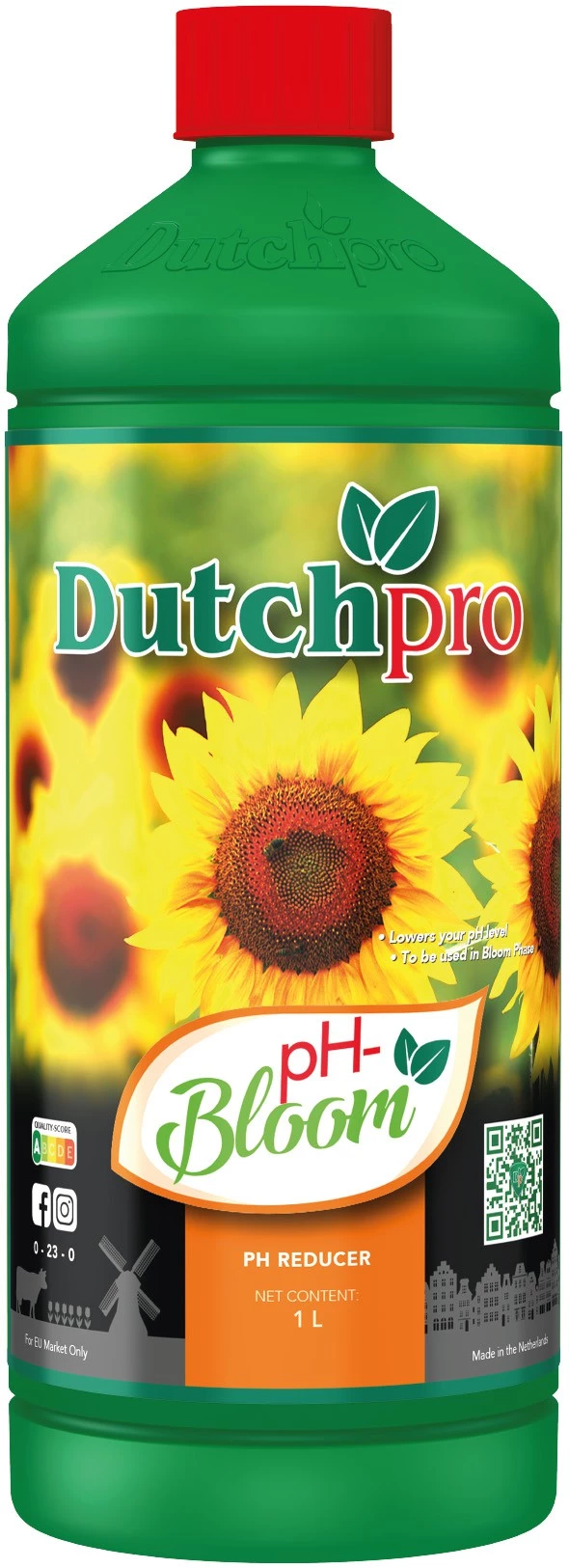 Dutch pro ph- bloom plantenvoeding 1l is voor het verlagen van de PH tijdens de bloei. Te gebruiken om de pH waarde te verlagen, tijdens de bloei-fase.Voeg kleine hoeveelheden DutchPro pH- Bloom toe, totdat de gewenste waarde is bereikt. Advieswaarde pH 5,8.