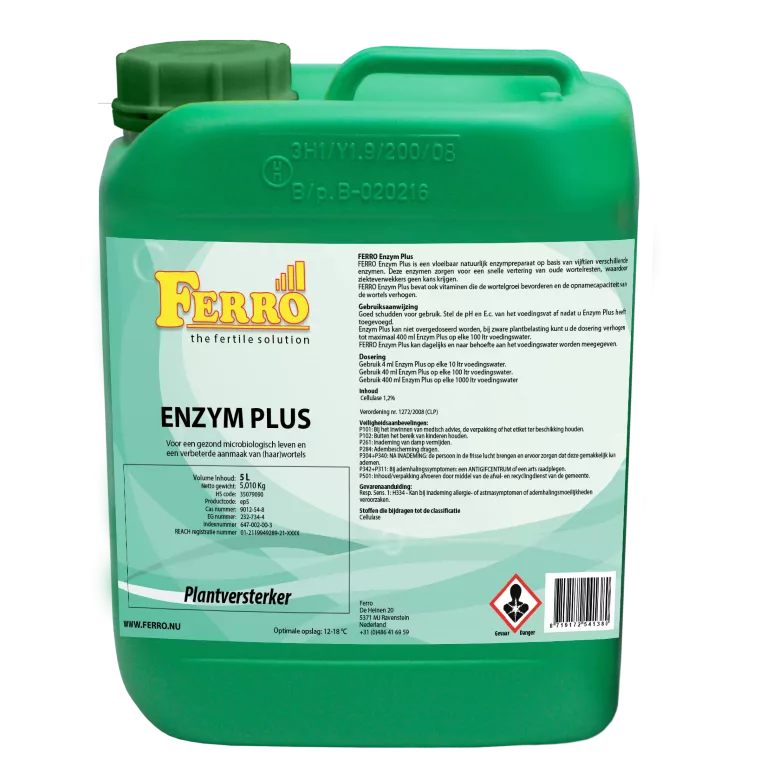 Ferro Enzym Plus is de biokatalysator. Ferro Enzym Plus breekt dode wortels af. Deze Enzymen zijn verrijkt met vitaminen en zorgen voor een optimaal bodem milieu.
