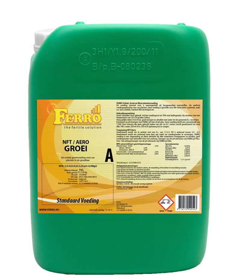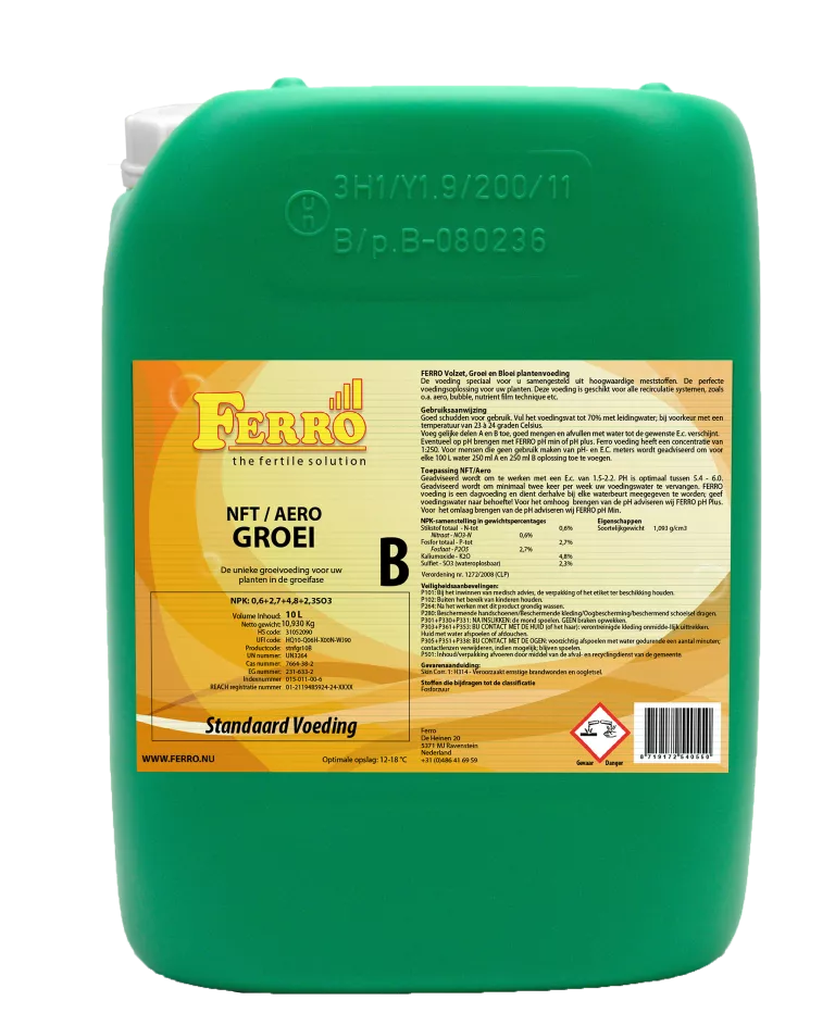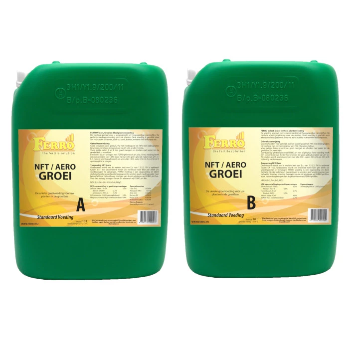 De Standaard NFT/Aero GROEI A&B voeding is de voeding die gebruikt wordt tijdens de groeifase op NFT/Aero systemen.