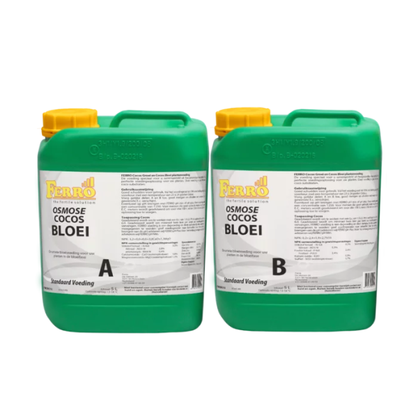 De Osmose COCOS GROEI A&B voeding is de voeding die gebruikt wordt tijdens de start- en groeifase op cocos substraten. Tijdens deze fase is het belangrijk dat de plant een uitgebalanceerde voeding krijgt, alsmede een goede pH sturing in het medium. Een perfecte twee componenten voeding voor uw planten tijdens de groeifase op cocos. Cocos Groei A & Cocos Groei B.