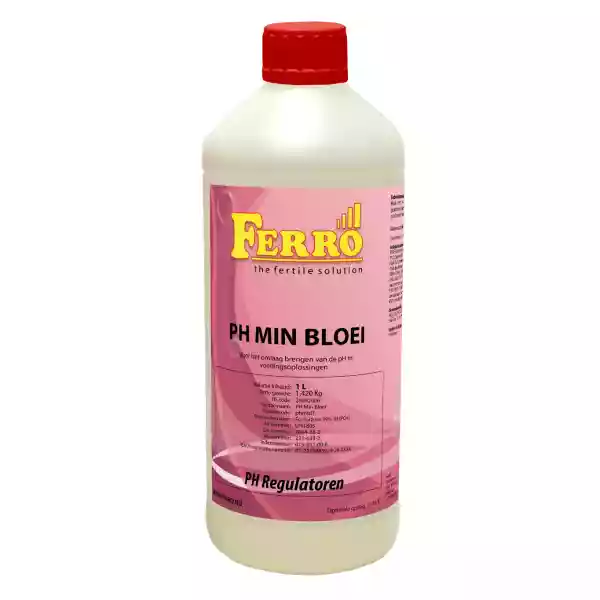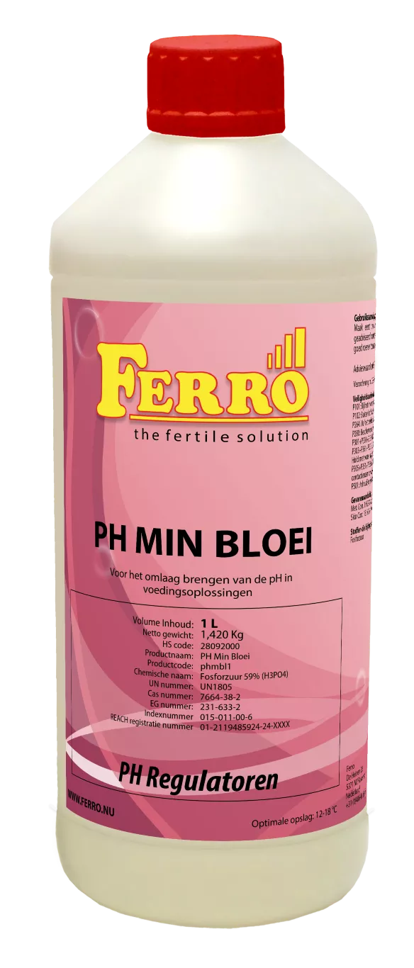 Ferro PH- Bloei 59% 1 liter PH regulators zijn er voor het verlagen of verhogen van uw pH in voedingsoplossingen.