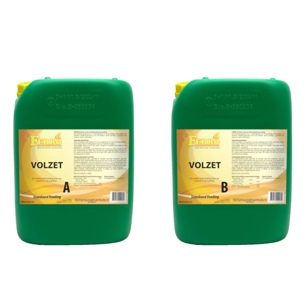 Standaard VOLZET A&B voeding is een echte start voeding, die gebruikt wordt om het substraat in te wateren als u de jonge planten uitzet in de aarde of plaatst op een hydro substraat. De voeding zorgt ervoor dat de eerste basisbehoeften van de jonge plant worden vervuld. Deze startvoeding zorgt er ook voor dat de pH stabiel blijft in het substraat. Ook is deze Volzet voeding uitermate geschikt voor het inwateren van stekpluggen, zowel op aarde als hydro stekpluggen. Volzet voeding is een twee componenten voeding en bestaat uit Standaard Volzet A & Standaard Volzet B. Een must voor je planten gedurende de start fase.