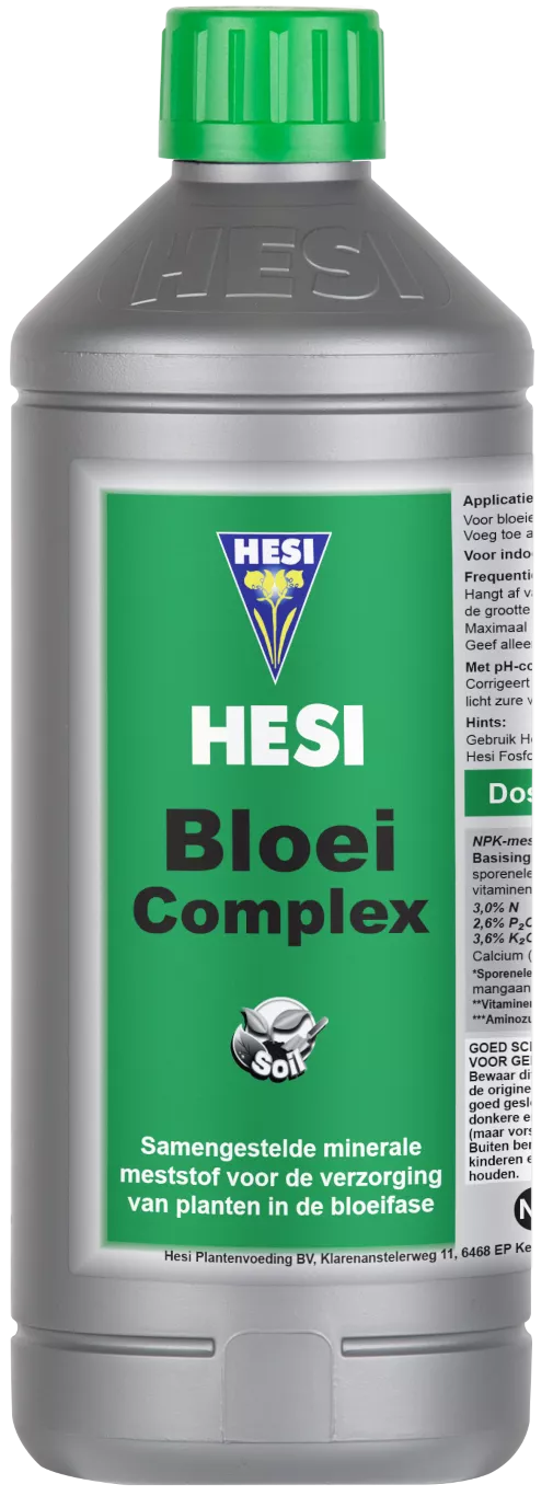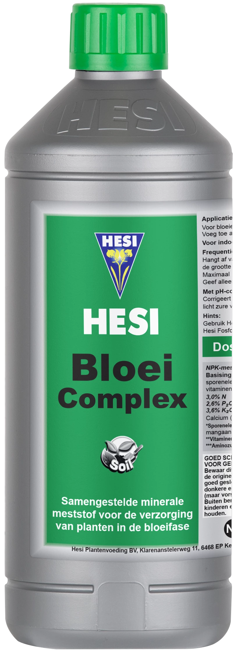 Volledige plantenvoeding voor de verzorging van bloeiende planten op aarde. Hesi Bloei Complex is verrijkt met bloeiactieve vitale stoffen, deze verhogen de plantenenergie en houden de bodemflora gezond. HESI kwaliteit betekent: zuiverste grondstoffen, vrij van ballaststoffen dus geen residu.