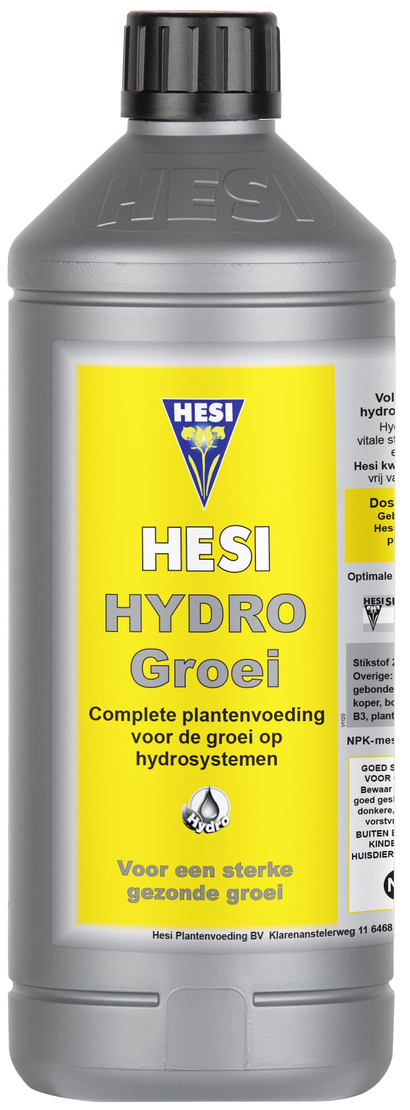 Complete voeding voor groeiende planten op steenwol of mapito Voor een sterke gezonde groei. Volledige plantenvoeding voor de hydroteelt van gewassen in de groeifase. Hesi Hydro Groei is verrijkt met groeiactieve vitale stoffen, deze verhogen de plantenenergie en houden de bodemflora gezond.
