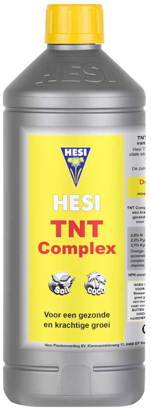 Een krachtige plantenvoeding voor de groei Hesi TNT-Complex is een zeer complete plantenvoeding die gebruikt kan worden bij de hobbykweek op aarde.