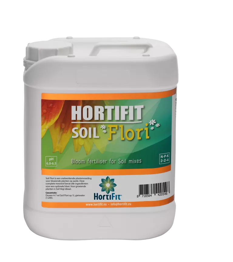 Soil Flori is een snelwerkende plantenvoeding voor bloeiende planten op aarde. Deze complete meststof bevat alle ingrediënten voor een optimale bloeifase. Voor het kweken van planten is Soil Vegi ideaal.