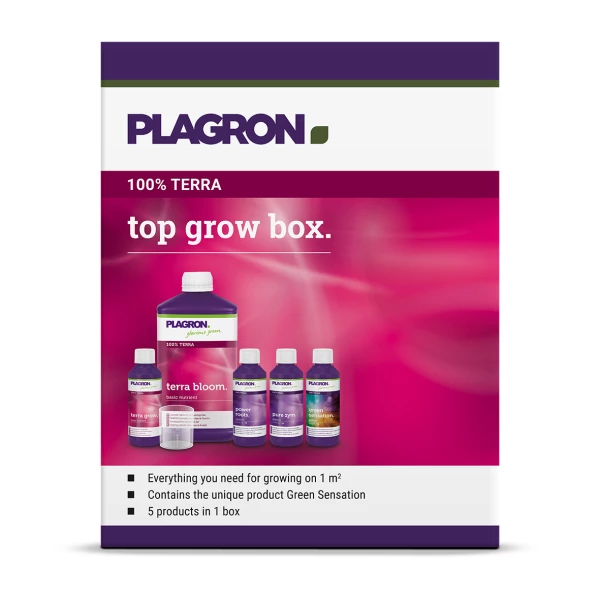 De Top Grow Box 100% TERRA bevat alles voor de kweek op 1 m². De Top Grow Box is een ideale box voor de kweker die flexibel wil zijn. Dankzij de direct opneembare voedingsstoffen in Terra Grow en Terra Bloom kun je altijd snel reageren op de behoeftes van je plant.